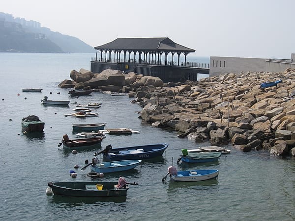 青馬大橋下有一個木製船型建築