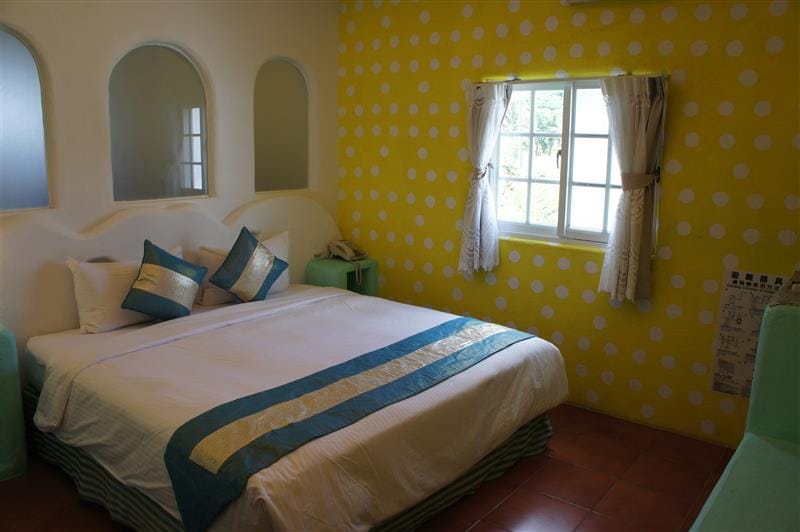 走道兩旁佈置著各種掛飾,拼貼圖樣的磁磚一直蔓延到廁所,讓人印象深刻。
