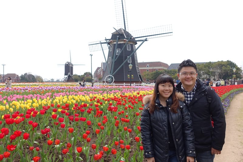 很難不注意到鬱金香富士山,使用紅白黃三種顏色,是寬10公尺、高4公尺的花壇。
