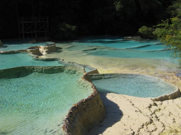 昨天的黃龍之旅 雖然美麗 但很多阿姨都吐了不少 大家對於接下來的行程 只要聽到”走路”就有懼怕 “走山路”就開始想吃藥 九寨溝我們搭乘的是環保公車 價錢要90人民幣(NT4…