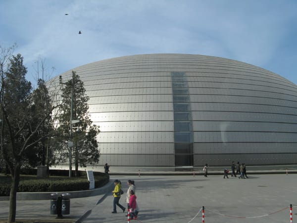 接下來是在遊覽車上看看國家大劇院, 耗資26.8838億元人民幣所打造而成的殼體造型劇院, 殼面由18398塊鈦金屬板和1226多塊的透明玻璃組成。 在車上都不能下車拍,真不爽,附上另外一張明信片給各位…