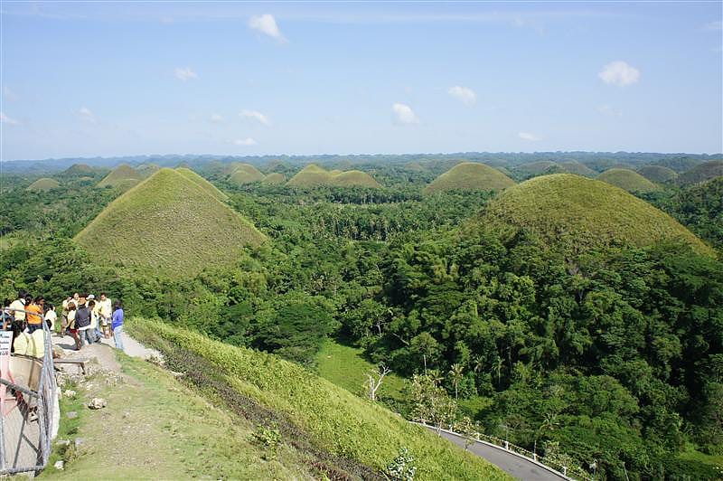 接著前往巧克力山,由塔比拉蘭市乘巴士約一小時45分鐘。 關於巧克力山的形成有一個傳說,想聽嗎?(不想也沒辦法耶,不好意思!) 傳說古時有兩個巨人用石頭向對方互相投擲,巨石一個一個掉在地上, 便…