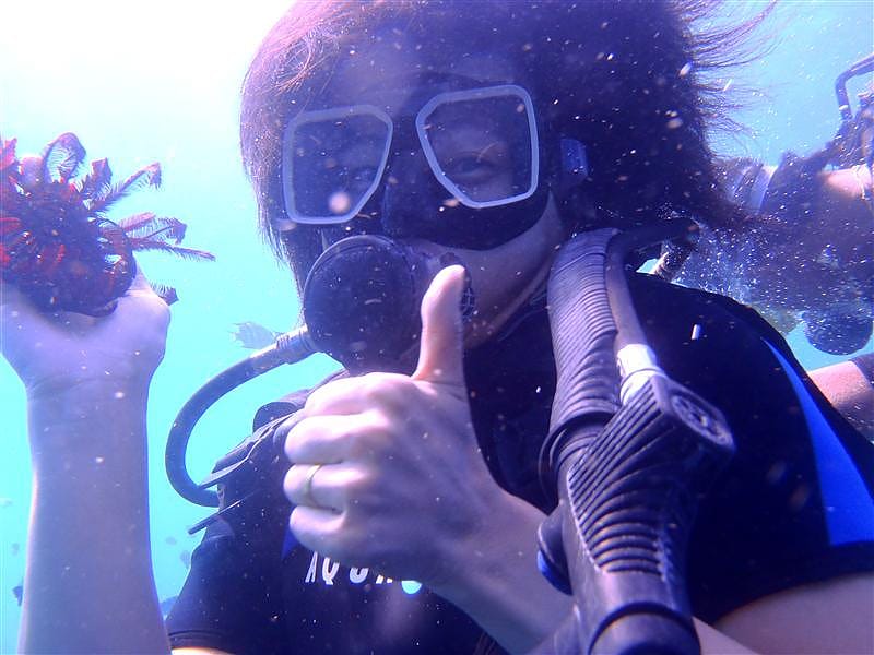 先來介紹一個單字 水肺潛水(Self-Contained Underwater Breathing Apparatus,SCUBA) 這就是這篇的主題囉! 這是這趟跟團最值得的項目了!雖然這是自費行程,我們一個人額外繳了65USD。 總共有…