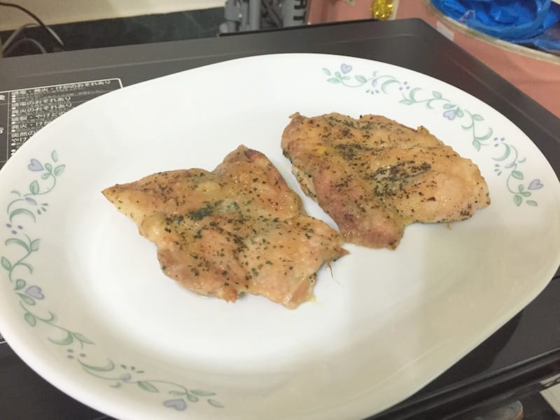 如果你還是覺得水波爐很麻煩的話……這篇要來介紹更傻瓜的料理香草烤雞。 自動菜單33,黑色烤盤放在烤盤位置中段,加水槽滿水。 注意:這道是針對總重約500g的雞腿或雞胸肉,烤全雞…
