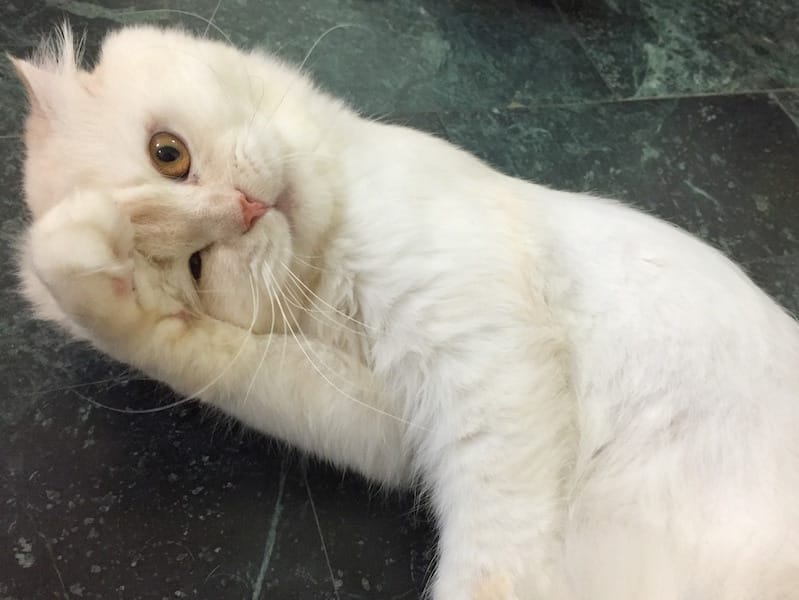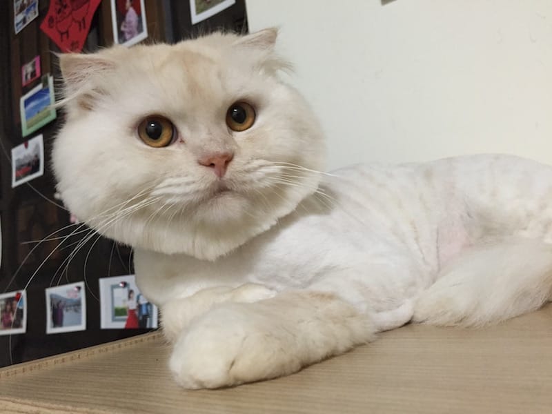 本週大事是把克卜勒剃毛了,在放上這些照片之前,先來緬懷一下毛茸茸的樣子QQ 神祕的坐姿,不理解這是哪學來的姿勢,(誰說你可以這樣跨坐棉被的…