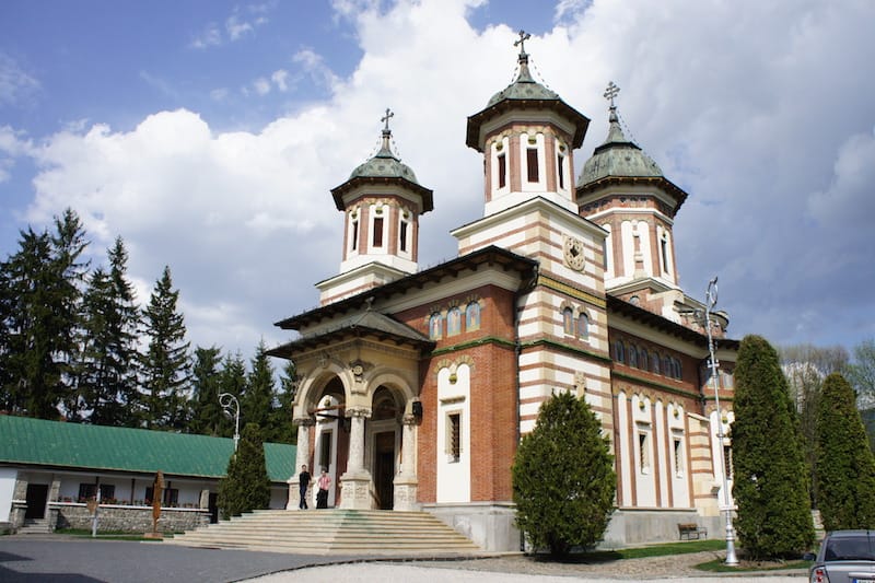 參觀完了城堡,我們回到車站,下個景點是Sinaia修道院。 經過Dimitrie Ghica公園,看到這個有趣的畫面這是拿石頭在下棋,還是用石頭代替棋子呢? 找路的過程沒有很順利,所以我們在這家Hotel Rina…